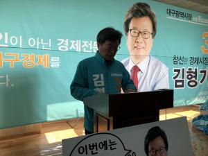 “뿌리가 썩은 것도 모자라 화석이 됐다. 화석을 깨는 것이 쉽겠는가” 6·13지방선거 공식 선거운동이 시작된 후 첫 휴일인 3일 오전 7시 달성공원 앞 새벽시장. 휴일을 맞아 이른 시간부터 나들이 나온 시민들로 북새통을 이뤘다. 이날은 지방선거를 앞두고 후보들이 몰리면서 더욱 복잡했다. 김형기 바른미래당 대구시장 후보도 일찌감치 도착해 유세 준비에 한창이었다. 김 후보는 물론 다른 시장 후보와 교육감 후보 3명, 구청장 후보 차량이 공원 앞에 진을 쳤다. 김 후보는 다른 후보가 차량 유세를 펼치는 동안 시장 안쪽으로 걸어 들어...