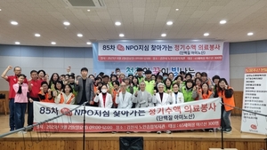 상주시 의료봉사단체 ‘NPO지심’(대표 보만 스님)이 지난 2일 김천시 노인종합복지관에서 ‘찾아가는 영양수액 의료봉사’를 펼쳤다.이번 봉사는 65세 이상 어르신 300여 명을 대상으로 건강상담과 수액 치료를 통해 따뜻한 위로의 시간을 가졌다.이날 의료봉사는 상주 안심플러스의원, 점촌 안심한의원, 김천노인종합복지관, KT&G, 재단법인 대한불교진흥원, 경희대학교 한의과대학, 영진약품 등 다수 기관의 후원으로 진행됐다고 NPO지심이 4일 밝혔다.양·한방 의료인 30여 명과 자원봉사자 50여 명이 참여해 비타민·영양제 수액주사, 테이핑