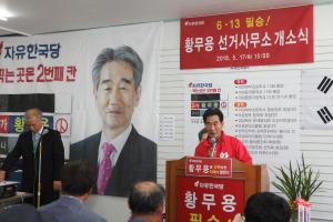 6·13지방선거 의성군가선거구(의성읍·단촌·점곡·옥산)에 출마한 황무용(65·자유한국당) 의성군의원 예비후보는 17일 오후 3시 의성군 의성읍에서 선거사무소 개소식을 했다. 이날 개소식에는 정해걸 전 국회의원, 박영문(상주·의성·군위·청송) 당협위원장, 김복규 전 의성군수, 김주수 한국당 의성군수 후보와 지역주민, 지지자 등 200여 명이 참석했다. 이날 황 후보는 자유한국당 후보가 당선돼야 의성지역 발전을 이끌어 낼 수가 있다며 지역 주민들께 지지를 호소했다.