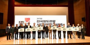 제8회 전국 청도 관광 사진 공모전 시상식이 지난 7일 청도 반시 축제장 상설무대에서 열렸다.지난 6월 16일부터 9월 8일까지 접수된 423점의 작품을 지난달 12일 청도군청 대회의실에서 심사해 금상 1점, 은상 2점, 동상 3점, 가작 6점, 입선 60점을 가려냈다.금상에는 창원시 변철규 씨의 ‘소싸움축제 1’이 선정돼 300만 원의 상금과 상패를 차지했다.은상에는 부산시 문진옥 씨가 출품한 ‘읍성 밟기’와 대구시 변창완 씨의 ‘낙대폭포’가 입상돼 200만 원의 상금과 상패를 받았다.동상에는 성주군 주봉제 씨의 ‘운문사의 전경’