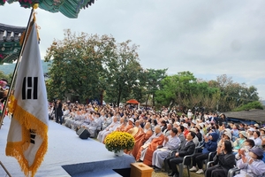 근대 한국 불교의 기틀을 세우고 독립운동에 헌신한 용성진종조사(1864~1940)의 오도일(悟道日·깨달음)을 기리는 특별법회가 성황리에 봉행됐다. 정토회(지도법사 법륜스님)는 지난 20일 구미시 도개면 아도모례원에서 ‘용성조사 오도일 제139주년 기념 특별법회’를 개최했다.이날 행사에는 법륜스님을 비롯해 유수 아도모례원 주지스님, 서원 대둔사 주지스님, 이재웅 구미도시공사 사장, 김혁종 신라불교초전지운영위원회 부위원장, 정토회원 등 불자와 시민 500여 명이 참석해 용성조사의 숭고한 정신을 되새겼다.1부 기념 법회는 용성조사를 기리