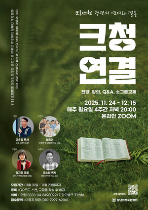 저출생과 비혼 확산 속에서 교회 공동체가 청년세대 신앙 결혼관 회복을 위한 교육에 나선다.청년회전국연합회(회장 이중지)는 오는 11월 24일부터 12월 15일까지 온라인으로 ‘크리스천 청년의 연애와 결혼 : 크청연결’ 아카데미를 운영하며 수강생을 모집한다고 밝혔다.이번 ‘크청연결’ 아카데미는 ‘크리스천의 결혼관과 신앙 전수의 비전’이라는 명제 아래 크리스천 결혼을 성경적 가치관에 따라 4주간 배우고 함께 나누며 궁금증을 풀어가기 위해 마련됐다.4주 과정은 매주 월요일 오후 8시 줌(ZOOM)으로 진행된다. 강의는 △기독 유튜버 ‘솬