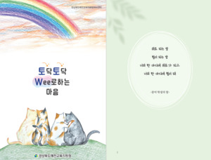 예천교육지원청 Wee센터가 관내 학생들의 실제 상담 여정을 담은 도서 ‘토닥토닥 Wee로하는 마음’을 발간한다.이번 출간은 2025학년도 Wee센터 특색 프로그램의 결과물로, 지난 1년간 예천지역 위클래스와 Wee센터를 찾은 학생들의 고민과 변화 과정을 기록한 것이 특징이다.도서에는 학생들이 상담 과정에서 표현한 글과 그림이 분야별로 정리돼 있다. 진로·대인관계·불안·감사 등 네 가지 주제를 중심으로, 학생들이 마주한 마음의 장면을 ‘작품’ 형태로 담아냈다.여기에 상담교사들이 학생들을 바라보며 느낀 변화와 성장의 순간을 기록한 글,