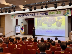 김천의 새로운 교육·문화 중심지로 기대되는 (가칭)경북교육청 김천도서관 건립이 본격화됐다.경북도교육청 김천교육지원청(교육장 모태화)은 16일 김천학생문화예술센터에서 사업설명회를 열고 도서관 건립 방향과 추진 일정을 시민에게 공개했다. 설명회에는 조용진 경북도의회 교육위원회 부위원장, 최병근 도의회 운영위원회 부위원장 등 지역 인사와 학부모, 시민 150여 명이 참석해 뜨거운 관심을 보였다.이날 설명회에서는 사업 경과, 건립 방향, 특화 전략, 시설 구성 등이 상세히 소개됐다.참석자들은 김천의 교육과 문화 수준을 높일 핵심 인프라로서