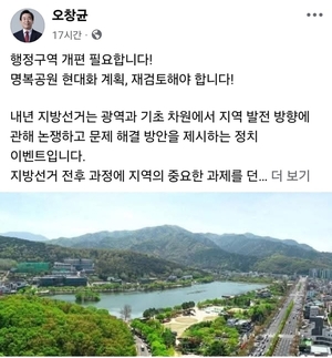 내년 6·3 지방선거를 앞두고 대구 지역 행정구역을 개편해야 한다는 주장이 제기됐다. 인구가 최대 40만 명 이상 차이가 나는 지역 간 불균형과 분리된 생활권의 미약한 연계성을 개선할 필요성이 있다는 얘기다.오창균 전 대구경북연구원장은 19일 자신의 SNS(사회관계망서비스)를 통해 행정구역 개편의 필요성을 역설했다.오 전 원장은 “내년 지방선거는 광역과 기초 차원에서 지역 발전 방향에 관해 논쟁하고 문제 해결 방안을 제시하는 정치 이벤트”라며 “지방선거 전후 과정에 중요한 과제를 던져놓고 주민 의견을 수렴하면서 갑론을박이 이뤄지면