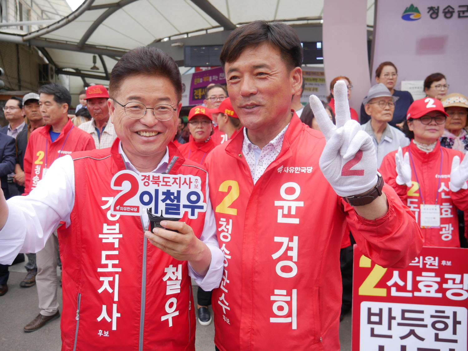 이철우 한국당 도지사 후보는 윤경희 후보가 청송군수가 되어 경북도와 청송군이 서로 상생 할 수 있도록 한국당 도지사 후보와 군수 후보를 지지해 달라고 말했다.