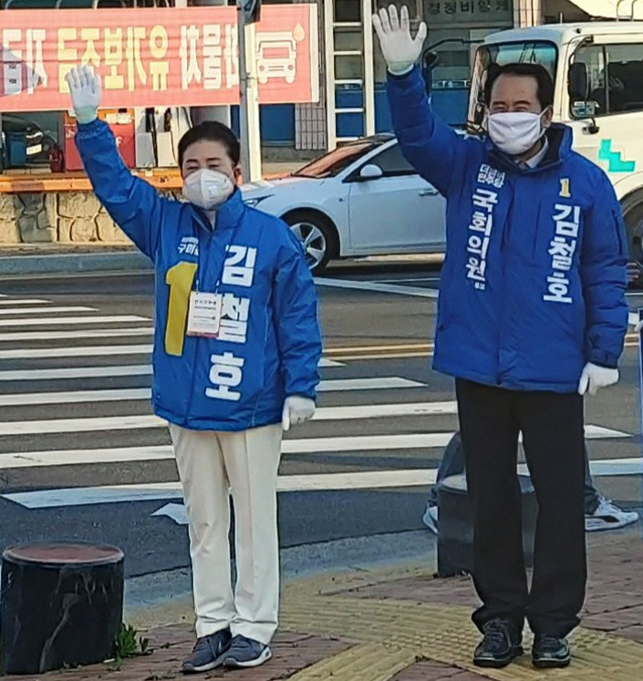 김 후보는 선거운동원 30여 명과 함께 신평동 양지공원 사거리에서 출근 차량을 향해 인사를 하며 공식 선거운동 시작했다.