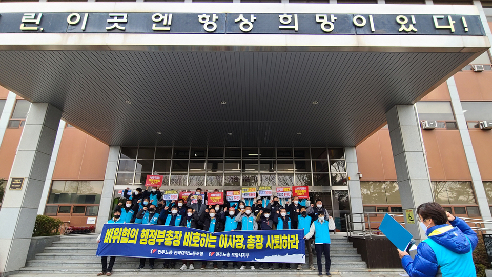 노조는 대학 경영진이 인사·징계권을 무기로 노조 간부 2명을 징계하려고 하는 등 조합원을 탄압하고 있다면서 부당노동 행위를 즉각 중단할 것을 요구했다.