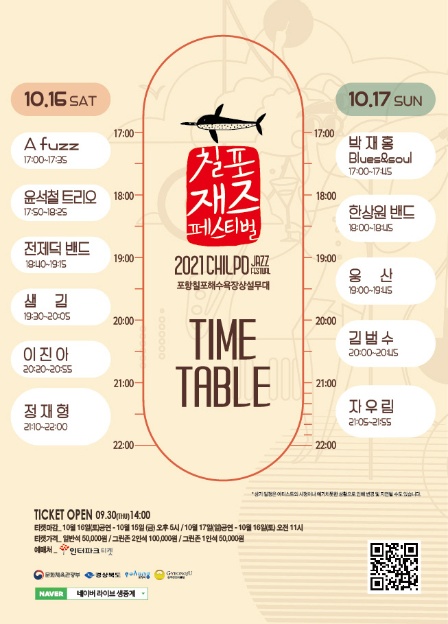 이와 함께 칠포재즈페스티벌을 그리워했을 관객들을 위해 네이버TV 라이브 중계를 통해 온라인 공연을 동시 진행한다. 온라인 공연은 무료로 진행된다.