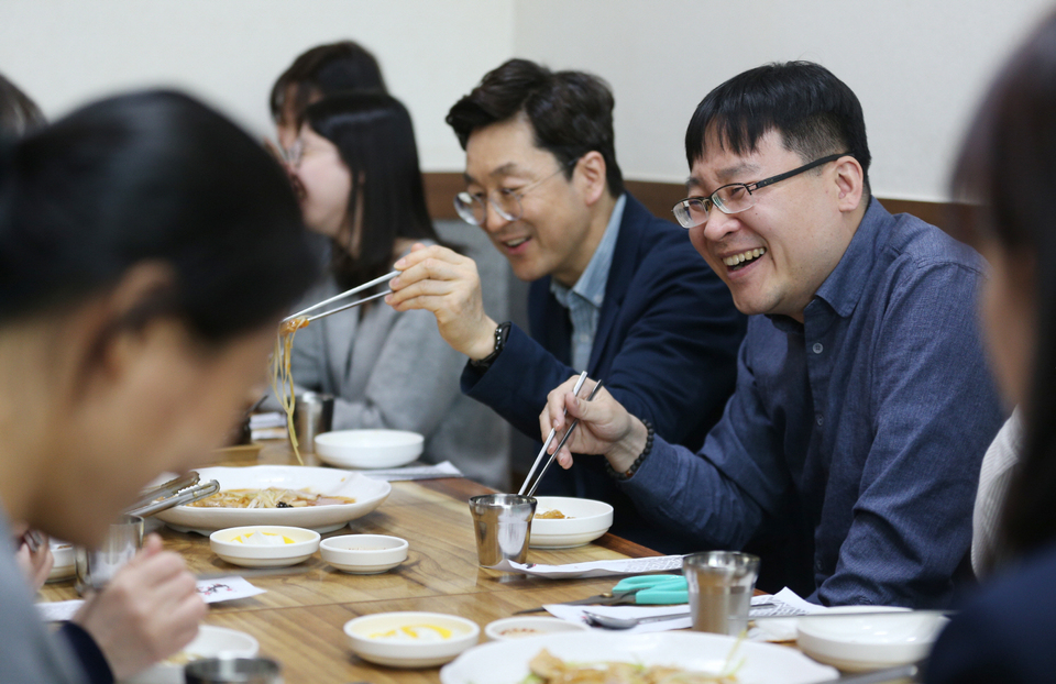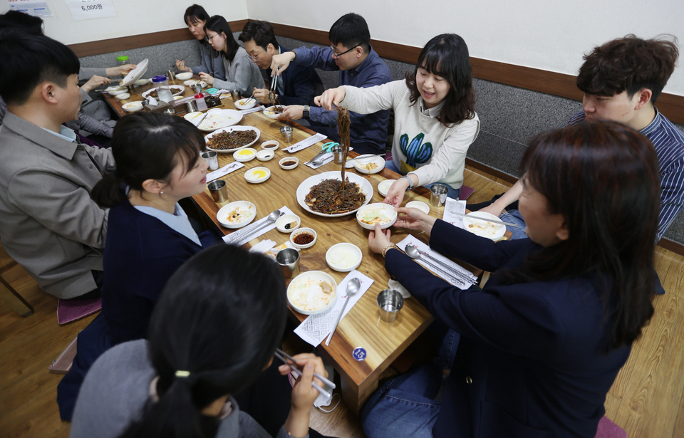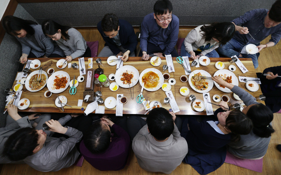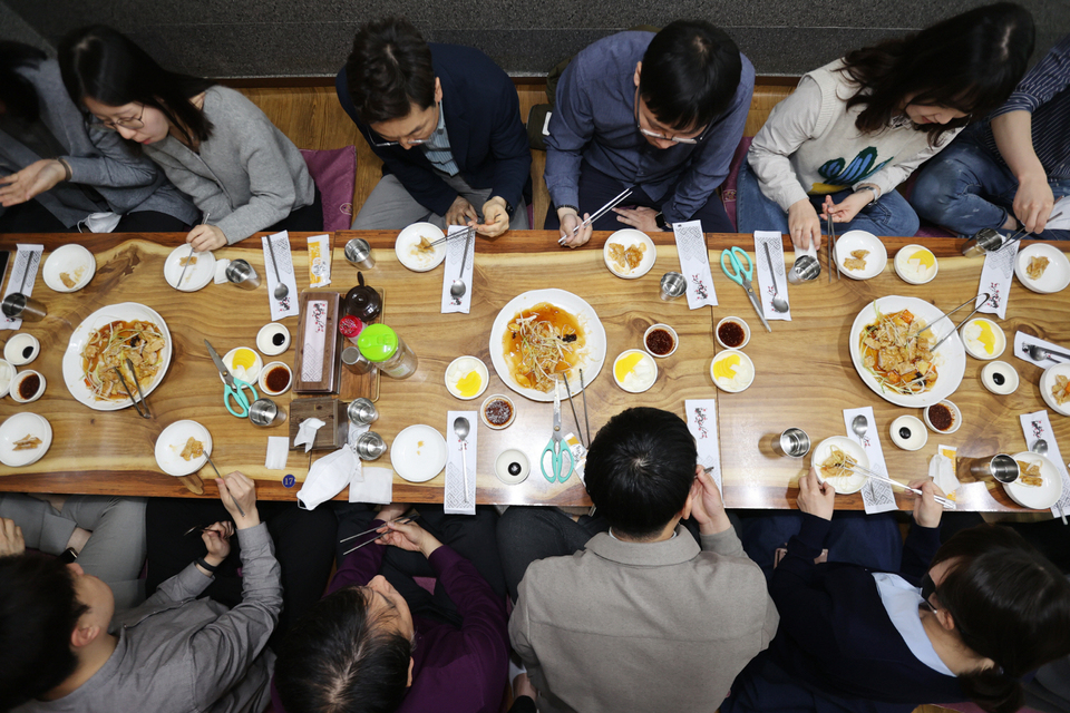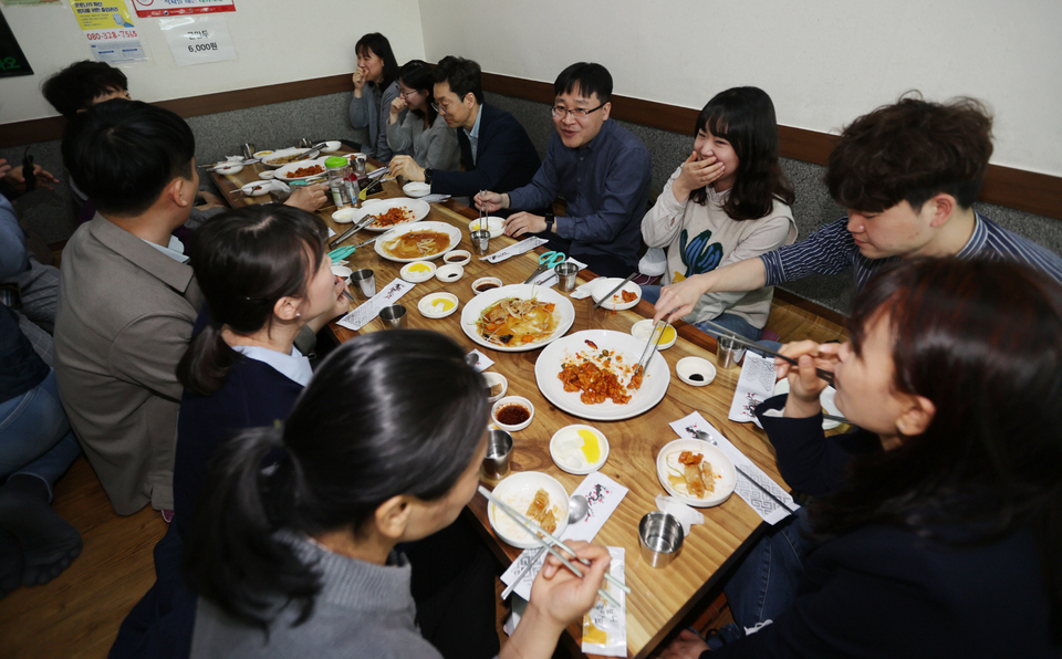 사회적 거리두기가 전면 해제 첫날인 18일 오전 대구 달서구 한 식당에서 단체 손님들이 밝은 분위기 속에 식사를 하고 있다. 박영제 기자 yj56@kyongbuk.com