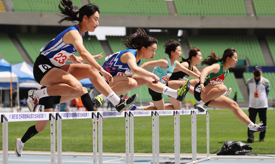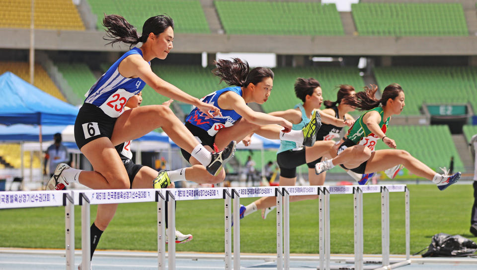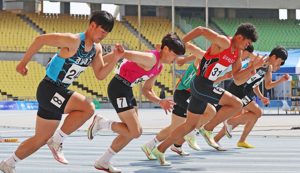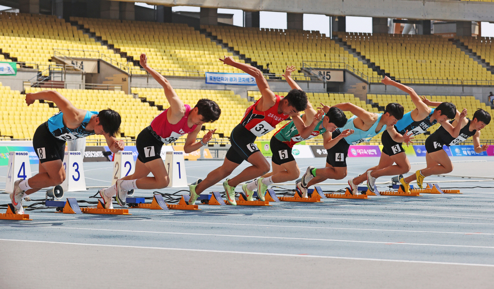 19일 대구 수성구 대구스타디움에서 열린 ‘제51회 전국종별육상경기선수권대회’에 참가한 선수들이 치열한 경쟁을 펼치고 있다.