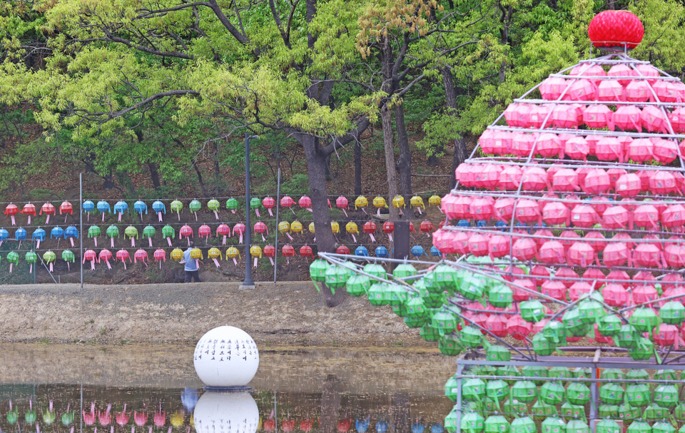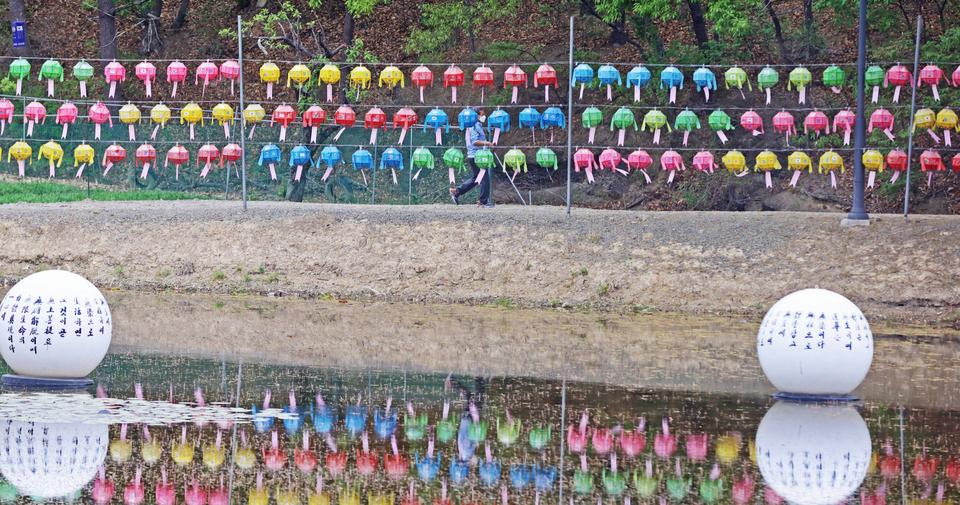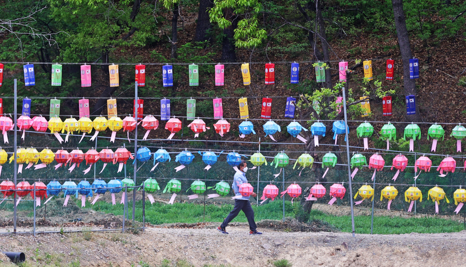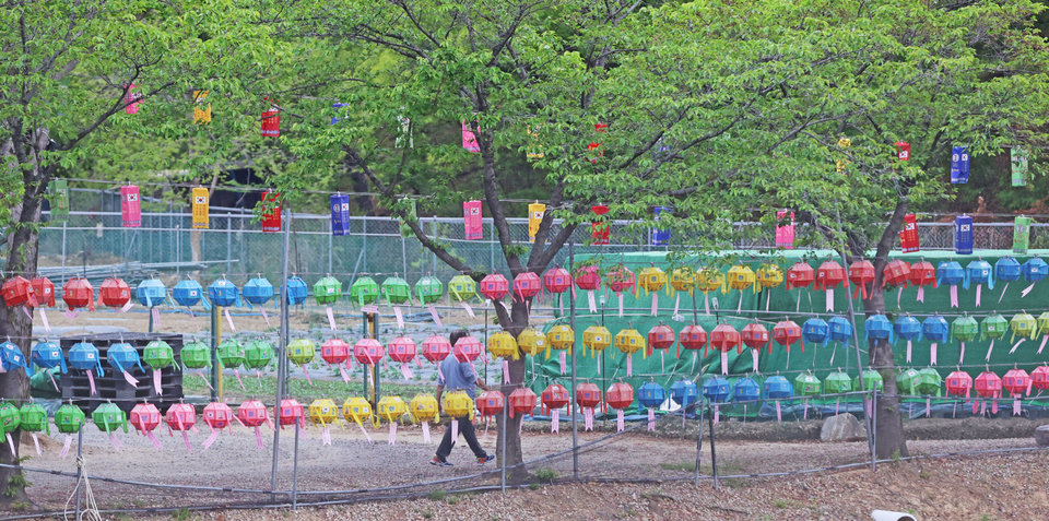 부처님 오신날을 앞두고 21일 오후 대구 수성구 동대사에 알록달록 연등이 설치돼 있다.