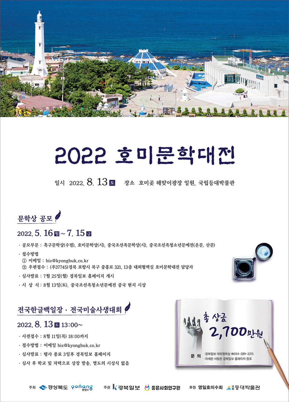 시상식은 8월 13일 오전 10시 포항시 호미곶 국립등대박물관 영상관에서 개최될 예정이다.