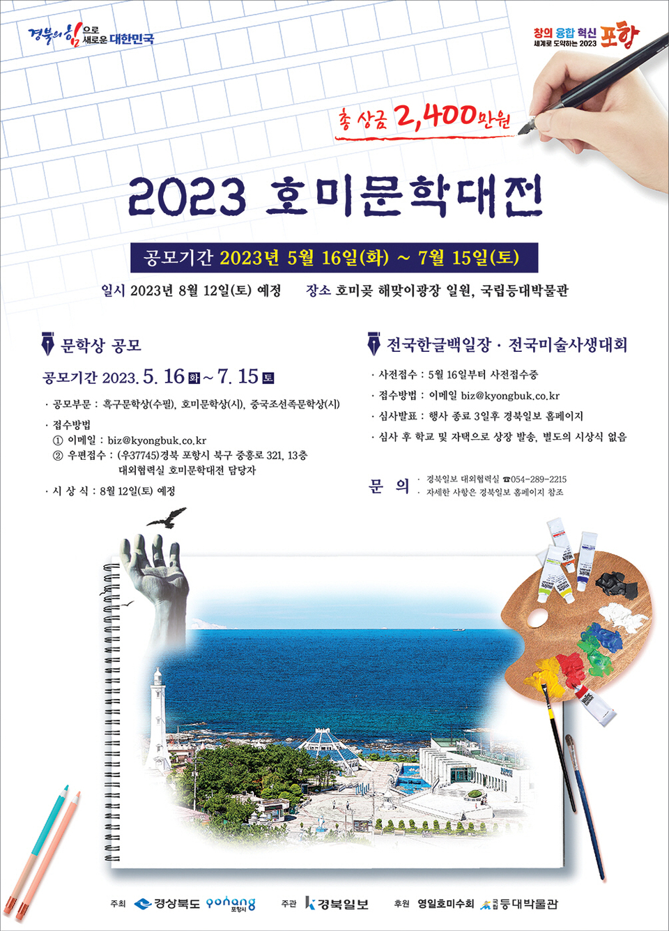 호미곶 푸른 바다와 수준 높은 문학이 어우러지는 ‘2023 호미문학대전’ 작품 공모가 16일부터 시작됐다.