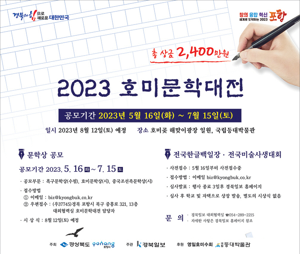 ‘2023 호미문학대전’ 전국 한글백일장·미술사생대회 입상자가 16일 결정됐다.