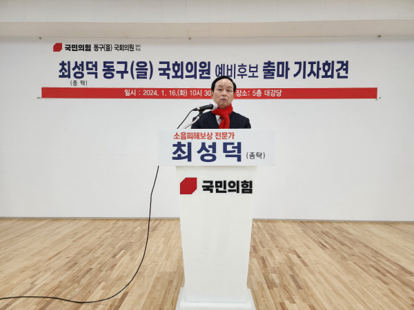 최성덕 국민의힘 대구 동구을 국회의원선거 예비후보가 16일 출마를 공식 선언했다.