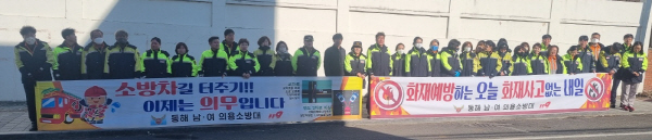 포항시 남구 동해면행정복지센터(면장 김동진)는 22일 동해면 남·여 의용소방대와 함께 ‘소방차 길 터주기 캠페인’을 실시했다.