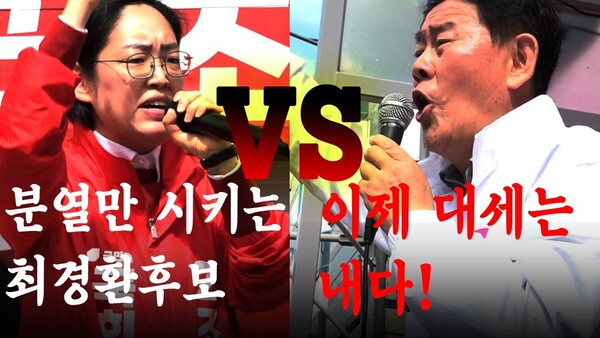 22대 국회의원 선거 경산시 선거구 국민의힘 조지연 후보와 무소속 최경환 후보가 5일 경산공설시장 유세에서 서로 승기를 잡았다고 주장했다.