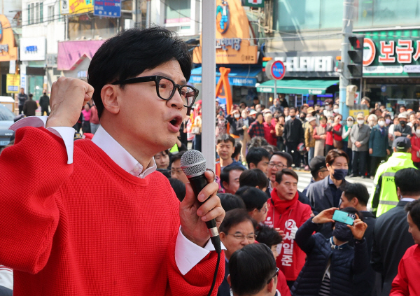 한 위원장은 대구에 앞서 이날 오후 7시 경산역 광장에서 국힘 조지연 후보 지원 유세를 한다. 경산시 선거구는 무소속 최경환 후보와 박빙을 벌이는 선거구다.