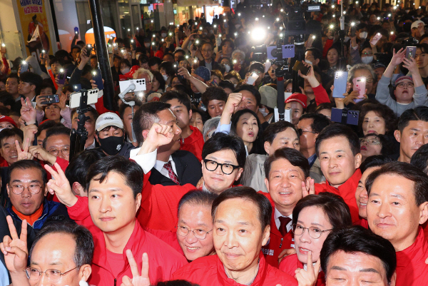 한동훈, 대구 동성로 지원유세…“뭉치면 살고 흩어지면 죽는다”