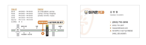 마카온치과. △마카온치과(대표원장 김현철)개업= 3월 15일 오전 9시~오후 1시, 대구광역시 수성구 달구벌대로 2492(2층 42087). 다른기사 보기 이만식 기자 mslee@kyongbuk.com mslee@kyongbuk.com 군위 의성 담당 저작권자 © 경북일보 무단전재 및 재배포 금지 당신만 안 본 뉴스 구미, ‘30만 대도시 특례’ 공론화 시동…동구미역·동서철도망 구축 핵심 아젠다로 의성 안평면 비닐하우스 큰불…100평 전소·농기계 다수 소실 “교통·산업·관광 3대축 혁신”… 민선 8기 3년, 문경의 일상이 바뀌다 영주시, 전국 최대급 ‘농기계 거점센터’ 완공…임대·정비·교육 한곳에 의성 구천면 장국리 이틀 연속 화재…경찰, 방화 용의자 검거 [설설설] 한동훈, 대장동·론스타 연속 이슈 장악…정치권 ‘한동훈의 계절’ 재부상 ‘APEC 문화전당’ 짓는다…경북형 레거시전략 본격화 ‘맨발의 청춘’ 신성일 기념관, 영천에 개관 개의 댓글 회원로그인 작성자 비밀번호 댓글 내용입력 댓글 정렬 최신순 추천순 답글순 BEST댓글 BEST 댓글 답글과 추천수를 합산하여 자동으로 노출됩니다. 닫기 더보기 댓글삭제 삭제한 댓글은 다시 복구할 수 없습니다. 그래도 삭제하시겠습니까? 비밀번호 닫기 댓글수정 댓글 수정은 작성 후 1분내에만 가능합니다. 본문 / 400 비밀번호 닫기 내 댓글 모음 닫기 주요기사 포항시가족센터, 취약가정 30가구에 겨울 이불 지원…“따뜻한 겨울나기 돕는다” 경북전문대 철도전기기관사과, 제2종 전기차량 운전면허 ‘94.4% 합격’ 안승대 울산 행정부시장 퇴임…“포항시장 출마” 사실상 공식화 대구 봉덕동 상가 화재…1420만원 재산 피해 ‘포항 미식 팝업홍보관’ 국회서 열려…글로벌 미식관광도시 도약 구미, 씨엠티엑스 363억 투자 유치…반도체 특화도시 도약 가속
