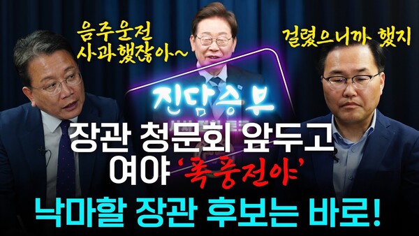 경북일보TV ‘진담승부’에서 이재명 정부의 1기 내각 인선을 둘러싼 열띤 토론이 펼쳐졌다. 임한순 경일대 특임교수의 진행으로 강민구 민주연구원 부원장과 홍석준 전 국민의힘 국회의원이 출연해 장관 후보자들의 자질과 논란에 대해 날카로운 의견을 주고받았다. 김민석 국무총리가 임명되고 국토부와 문체부 장관 후보자 발표를 앞둔 시점에서, 상당수 후보자들이 각종 문제로 논란을 빚고 있는 상황에 대한 양측의 평가가 엇갈렸다.