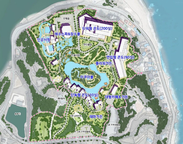관광진흥법 기준을 충족하는 숙박시설 300실 이상과 27홀 규모의 골프장이 들어서며, 천혜의 입지를 살린 고품격 체류형 관광단지로 조성될 예정이다.