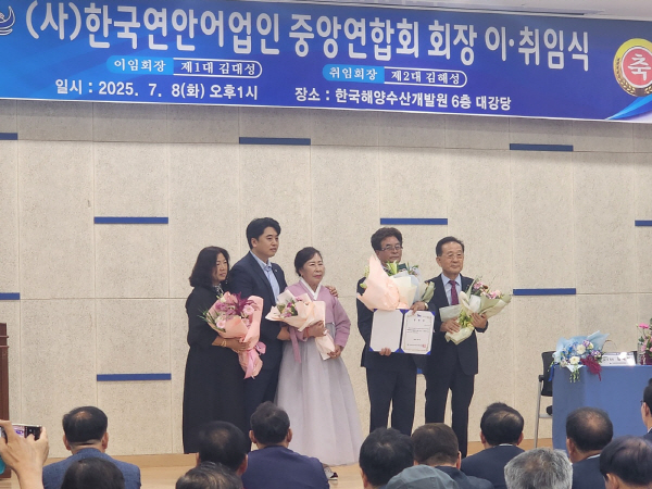 김 회장은 “김대성 초대 회장이 닦아온 기반을 바탕으로 연안어업인의 권익 보호와 수산업 지속가능성 확보를 위해 최선을 다하겠다”며 “기후변화 등 새로운 환경 변화에도 선제적으로 대응해 어업 경영 안정에 힘쓰겠다”고 밝혔다.
