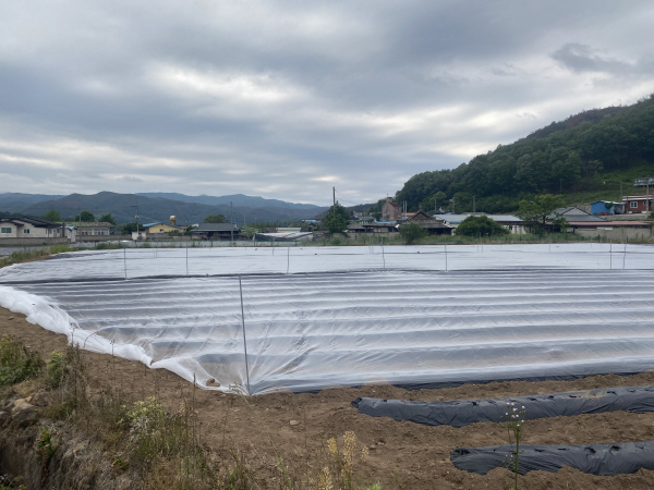 이날 청송읍 거대리에서 만난 농민은 블루베리 밭에 아예 그물망을 설치했다. 밭 전체를 덮은 흰색 그물은 마치 커다란 텐트를 씌운 듯했다. 그러나 그물 한 귀퉁이에 5cm 남짓한 틈이 생긴 것을 발견하자 곧장 연장을 들고 달려가 보수에 나섰다.