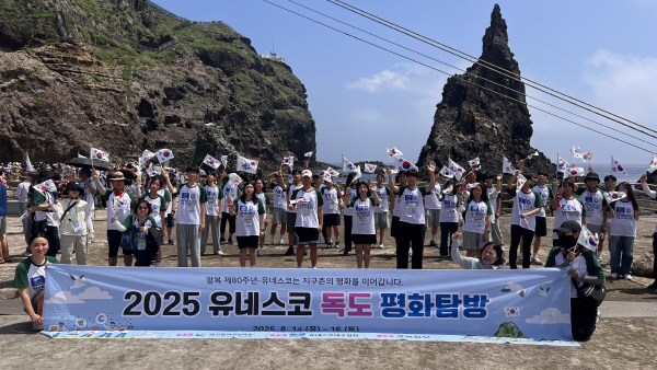 대구지역 청소년 28명과 지도교사, 유네스코 지도자 등 총 40명으로 꾸려진 탐방단은 △광복 80주년 기념 플래시몹 △독도 평화 골든벨 △평화 주제 토론 등 다채로운 프로그램을 통해 독도의 역사적 의미와 평화의 소중함을 되새겼다.
