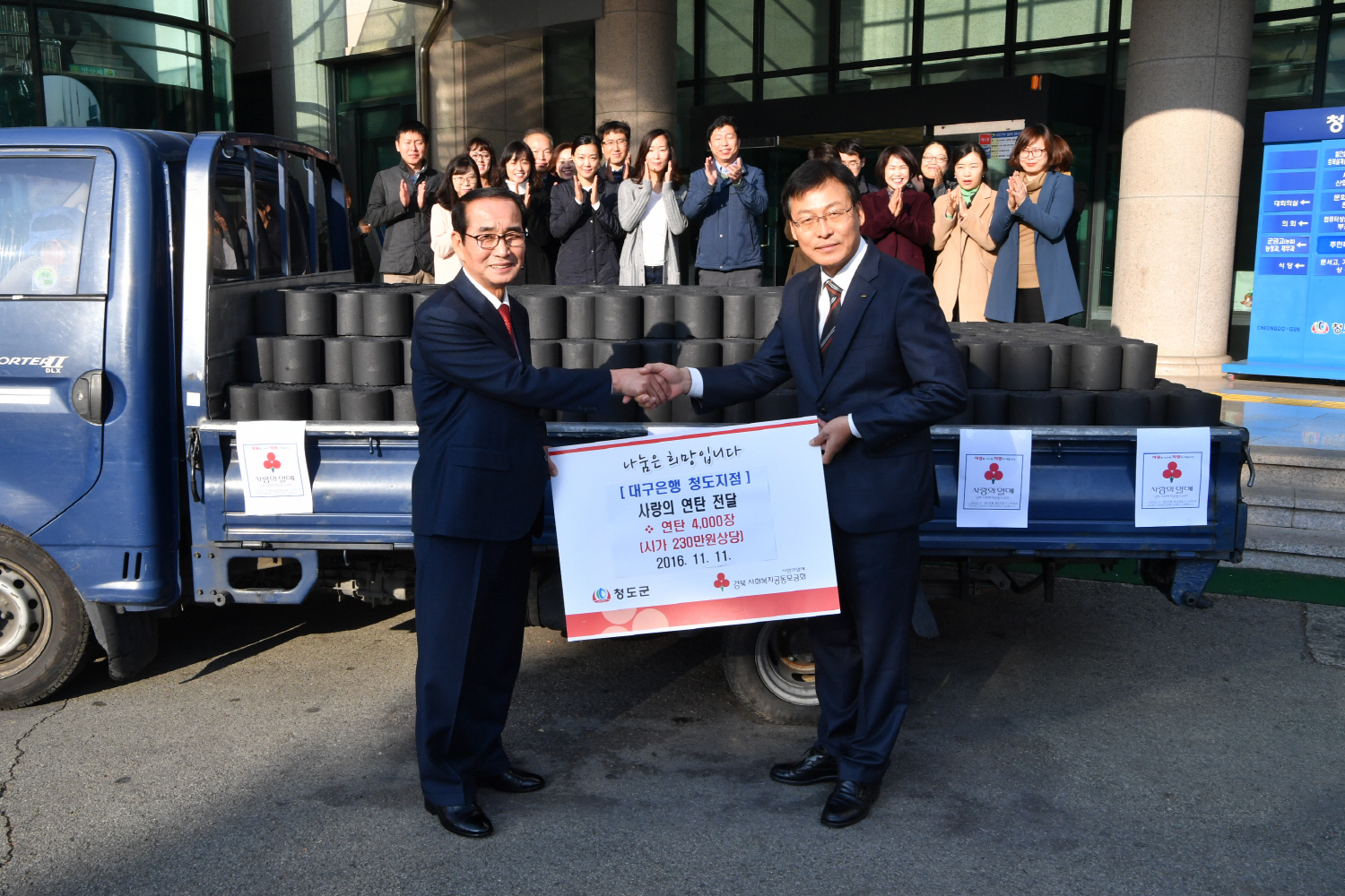 대구은행 청도지점(지점장 박광희)은 지난 11일 지역 내 기초수급자, 차상위계층, 장애인 등 20세대에 사랑의 연탄 각 200장씩, 총 4천여장(시가 230만원 상당)을 전달했다. 다른기사 보기 저작권자 © 경북일보 무단전재 및 재배포 금지 당신만 안 본 뉴스 구미, ‘30만 대도시 특례’ 공론화 시동…동구미역·동서철도망 구축 핵심 아젠다로 의성 안평면 비닐하우스 큰불…100평 전소·농기계 다수 소실 “교통·산업·관광 3대축 혁신”… 민선 8기 3년, 문경의 일상이 바뀌다 영주시, 전국 최대급 ‘농기계 거점센터’ 완공…임대·정비·교육 한곳에 의성 구천면 장국리 이틀 연속 화재…경찰, 방화 용의자 검거 [설설설] 한동훈, 대장동·론스타 연속 이슈 장악…정치권 ‘한동훈의 계절’ 재부상 ‘APEC 문화전당’ 짓는다…경북형 레거시전략 본격화 ‘맨발의 청춘’ 신성일 기념관, 영천에 개관 개의 댓글 회원로그인 작성자 비밀번호 댓글 내용입력 댓글 정렬 최신순 추천순 답글순 BEST댓글 BEST 댓글 답글과 추천수를 합산하여 자동으로 노출됩니다. 닫기 더보기 댓글삭제 삭제한 댓글은 다시 복구할 수 없습니다. 그래도 삭제하시겠습니까? 비밀번호 닫기 댓글수정 댓글 수정은 작성 후 1분내에만 가능합니다. 본문 / 400 비밀번호 닫기 내 댓글 모음 닫기 주요기사 포항시가족센터, 취약가정 30가구에 겨울 이불 지원…“따뜻한 겨울나기 돕는다” 경북전문대 철도전기기관사과, 제2종 전기차량 운전면허 ‘94.4% 합격’ 안승대 울산 행정부시장 퇴임…“포항시장 출마” 사실상 공식화 대구 봉덕동 상가 화재…1420만원 재산 피해 ‘포항 미식 팝업홍보관’ 국회서 열려…글로벌 미식관광도시 도약 구미, 씨엠티엑스 363억 투자 유치…반도체 특화도시 도약 가속
