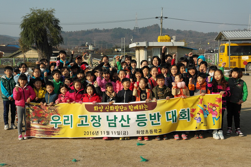 청도 화양초등학교 전교생 50여 명이 참여한 가운데 신화랑단과 함께하는 우리 고장 남산 등반대회를 하고잇다. 청도군 화양초등학교(교장 김영화)는 지난 11일 전교생 50여 명이 참여한 가운데 신화랑단과 함께하는 우리 고장 남산 등반대회를 실시했다. 이번 남산 등반은 1·2·3학년은 석빙고를 거쳐서 계곡을 따라 남산 13곡을 답사하는 5㎞ 코스, 4·5·6학년은 향교를 거쳐서 남산 등반로를 따라 남산 13곡을 둘러보고 신둔사를 답사하는 7㎞ 코스로 체력단련과 극기심을 키우기 위해 마련됐다.