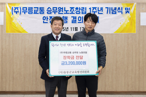 울릉군의 대중교통을 책임지고 있는 주식회사 무릉교통 승무원노동조합이 지역 학생들을 위한 나눔 실천에 앞장섰다.승무원노동조합은 지난 17일 (사)울릉군교육발전위원회(이사장 한익현)에 장학금 320만 원을 전달하며 울릉교육 지원에 힘을 보탰다.기탁식에서 박성하 위원장은 “섬이라는 지리적 여건 속에서도 자신의 길을 묵묵히 걸어가는 학생들에게 작지만 따뜻한 응원이 되길 바란다”며 “조합원 모두가 한마음으로 준비한 장학금”이라고 전했다.남한권 이사는 “험한 도로 환경 속에서도 주민들의 발이 되어 주는 승무원 여러분이 학생들을 위해 나눔까지