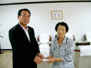 경북일보 정정화 사장이 26일 대아그룹 황인찬회장을 대신해 두차례 간이식 수술을 받은 정아름양(본보 20일자 4면 보도) 돕기 성금으로 100만원을 정양의 할머니에게 전달했다.