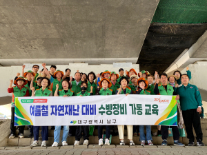 대구 남구청은 남부경찰서와 지역 자율 방재단 등 유관 기관과 합동 수방 장비 가동 훈련을 지난 19일 진행했다.남구청은 훈련을 통해 2025년 여름철 자연 재난에 대비해 수방 장비 가동과 대응 요령 교육 등을 실시했다고 21일 밝혔다.이번 훈련은 기상이변에 따른 집중호우 등 단일 행정기관에서 감당하기 어려운 재난 상황이 발생할 경우를 대비해 민·관이 합동훈련을 진행함으로써, 피해가 발생하더라도 최소화할 수 있는 대응과 복구 방안을 마련하기 위해 마련됐다.이어 재난 현장에서 발생할 수 있는 민원과 문제점, 인명피해 우려 지역에 대한