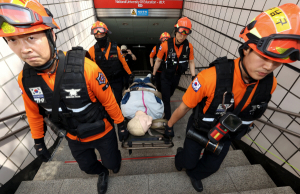 수해피해 및 리튬배터리 화재에 따른 도시철도 사고를 가정한 ‘재난 대응 안전한국훈련’이 26일 오후 대구시 남구 교대역에서 28개 기관 및 단체 400여 명이 참여한 가운데 실시되고 있다. 이번 훈련은 각종 재난에 대비한 대응 역량 강화, 대응체계 확립 등을 위해 열렸다.