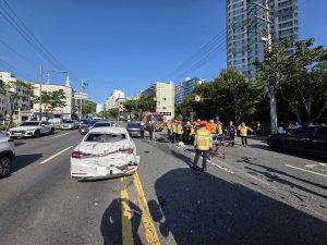 대구 남구 봉덕동 앞산순환로에서 차량 6대가 연쇄 추돌하는 사고가 발생해 6명이 중·경상을 입었다.23일 대구소방안전본부에 따르면, 이날 오전 7시 24분께 “상동교 서편에서 교통사고가 크게 났다”라는 신고가 접수됐다.40대 여성 A씨가 운전하던 팰리세이드 차량이 앞서 신호대기 중이던 산타페 차량을 추돌한 뒤, 연쇄적으로 앞에 있던 차량 4대까지 부딪치며 6중 추돌사고로 이어졌다.소방 당국은 구급대원 등 33명과 차량 10대를 현장에 투입해 구조 작업을 펼쳤다.이 사고로 A씨가 중상을 입었고, 다른 차량 운전자 50대 남성 B씨는