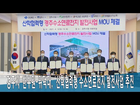 경상북도와 경주시 한국수력원자력, 위덕대학교는 12일 경주시청 대회의실에서 경주 수소연료전지 발전단지 조성 업무협약을 체결했습니다.