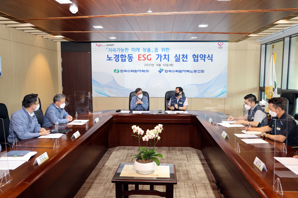 한편 한수원 노사대표(사장 정재훈, 노조위원장 노희철)는 지난 10일 경주 한수원 본사에서 ‘노사합동 ESG 가치 실천 협약’을 맺고, 코로나19로 고통 받고 있는 지역의 위기 극복을 위한 사회적 책임을 실천하기로 했다.