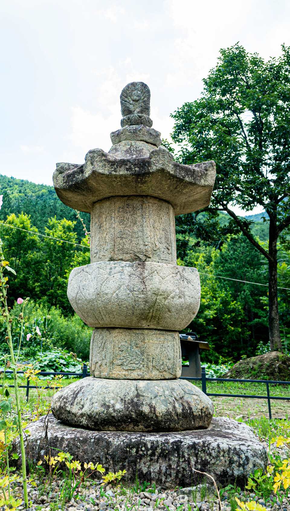 보각국사 부도탑은 자연석의 지대석 위에 하대석을 올렸는데 복련 16장을 선각으로 새겼다. 8면의 중대석은 각 면에 사각형을 만들고 각면마다 동물을 한 마리씩 새겨 넣었다. 상대석은 8장의 앙련을 새겼고 고 그 위에 팔각형의 몸돌을 올려놓았다. 몸돌의 정면에 ‘보각국사정조지탑 普覺國師靜照之塔’ 두 줄로 새겨져 있다. 뒷면에는 문비를 새겼다. 부도탑 옆에 나란히 있는 돌부처는 고로면 괴산리 폐사터에서 옮겨왔다. 일연의 부도탑 옆에 있으니 성불한 일연이 저런 모습으로 좌선하고 있는 것은 아닌가 싶기도 하다.