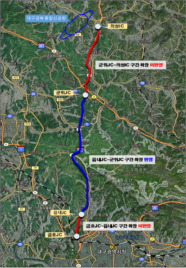 중앙고속도로 금호JC~의성IC 확장도 중요하다. 통합신공항이 완공되면 대구시민이 가장 많이 이용할 교통망이기 때문이다.