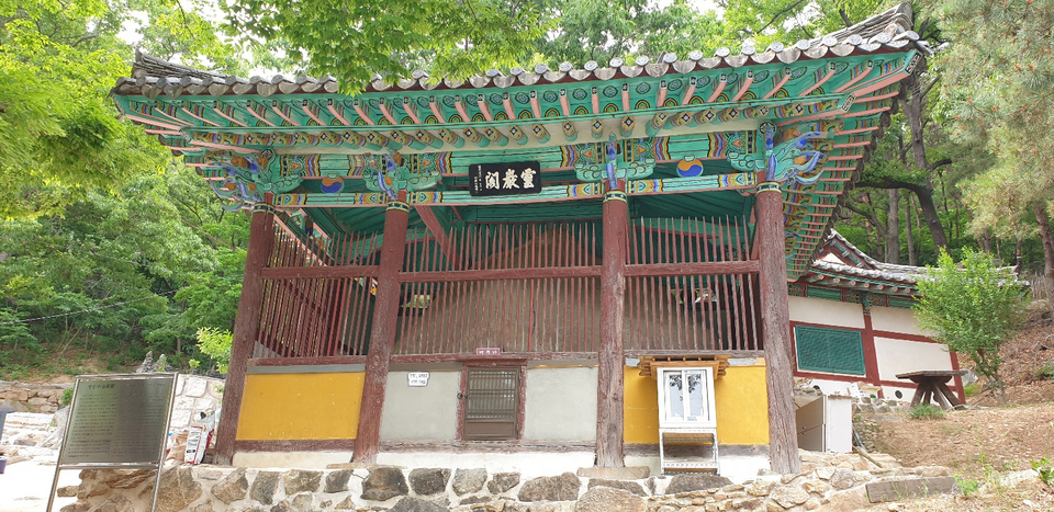 개인의 소원성취를 위해 치성을 드리는 뜻에서 미륵당이라고 일컬어지는 영암각은 거대한 바위를 보호하기 위해 세운 정면 3칸, 측면 2칸의 팔각집으로 성황사 바로 아래 남향으로 자리 잡고 있다.