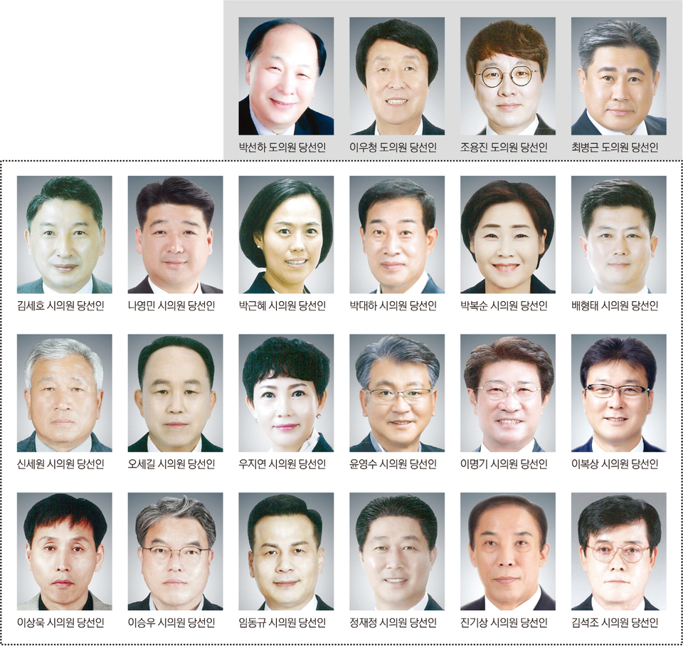 2018년 지방선거에서 2명이던 김천시 경북도의원 선거구는 이번에 3개로 늘었다. 여기에 김천 출신 비례대표 1명이 당선됐다. 모두 새 얼굴로 나기보 경북도의원은 김천시장 선거에 출마했고 무소속으로 출마한 박판수 도의원은 국민의힘 후보에 패했다.
