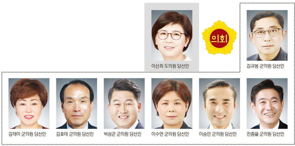 7명(비례대표 1명)의 기초의원 의원을 뽑는 청도군의원 선거는 지역구 6명·비례대표 1명이 당선됐다.