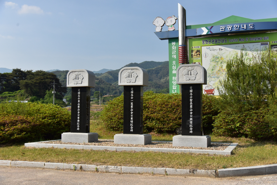 오록마을 입구에 있는 물야초등학교 앞쪽에는 노봉 김정 선생 기념추모비가 있다. 300년 전에 노봉 선조가 터를 잡았다는 기념비로 1996년 병자년(丙子年) 12월 8일에 세워졌다.