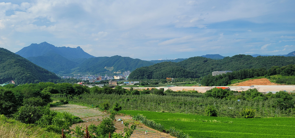 산자락 비탈에는 문경의 특산품인 사과 과수원이 끝도 없이 펼쳐져 있다. 그 앞 들판 ‘새재들’에는 벼가 주종을 이루는 가운데, 사과 과수원, 연꽃 단지 등이 결실을 위해 구슬땀을 흘리고 있다.