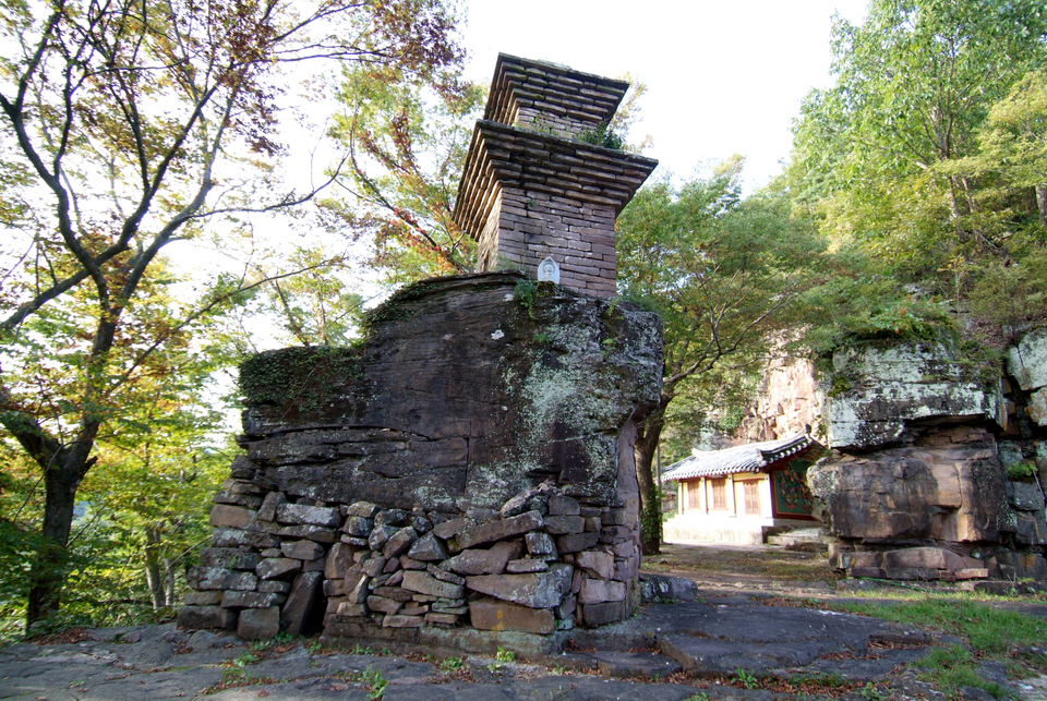 지금도 불신도들이 많이 오고 간다 꼬불꼬불하고 비좁은 산길을 따라가면 암자 우측 절벽 끝에 3층 전탑이 서 있는데 원래 3층으로 만들어졌지만 현재는 2층까지만 남아 있다. 1962년 탑을 수리할 때 불상을 안치하는 감실바닥을 정리하는데 6좌의 금동불이 발견됐으며, 삼국통일 이전에 만들어진 호신불이라 하니, 탑은 천 년도 더 된 셈이다.