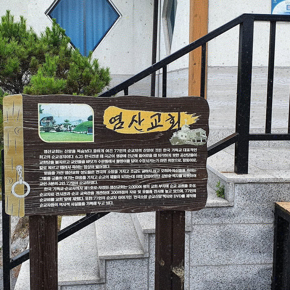 염산교회는 1950년 9월 28일 서울이 수복되고 국군과 유엔군이 영광읍내로 들어올 것이라는 소문이 퍼지면서 기독청년들이 만세 환영대회를 준비하던 중 미처 빠져나가지 못한 공산당들이 이를 분히 여기고 복수하면서 순교가 시작됐다. 김병호 당시 목사 등 총 77명이 바다에 수장당하거나 창과 뭉둥이로 죽임을 당하는 등 순교했다.