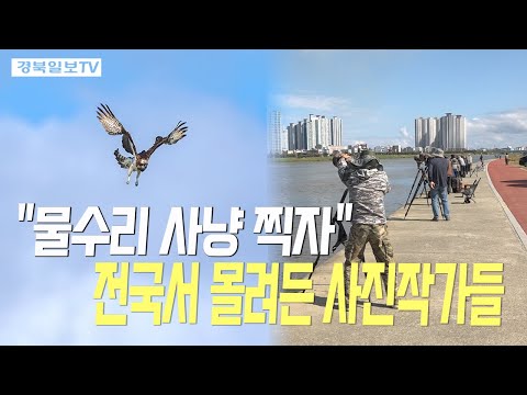 포항시 남구 형산강에는 물수리의 사냥하는 모습을 촬영하기 위해 전국 각지에서 몰려든 사진작가들로 북적인다.