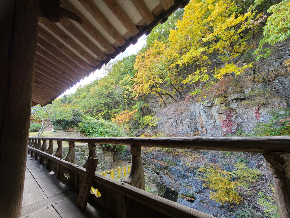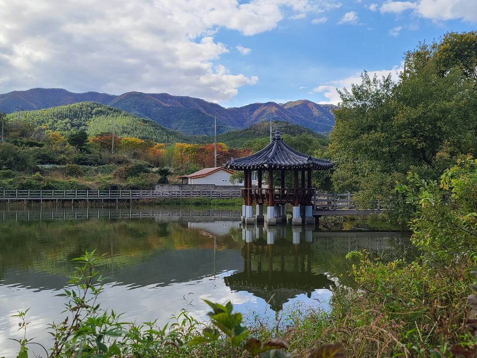골목을 나와 벽화길 따라 2~3분 정도 걸으면 우측에 ‘말미평 저수지’가 있다. 저수지 위에는 정자가 설치돼 있었는데 들어가는 입구에 300년이 넘은 버드나무 2그루가 나무가 웅장한 자태를 뽐내며 서 있었다. 여기에 봉좌산에 물든 가을의 정취가 더해져 한 폭의 수묵화를 연상케 했다.